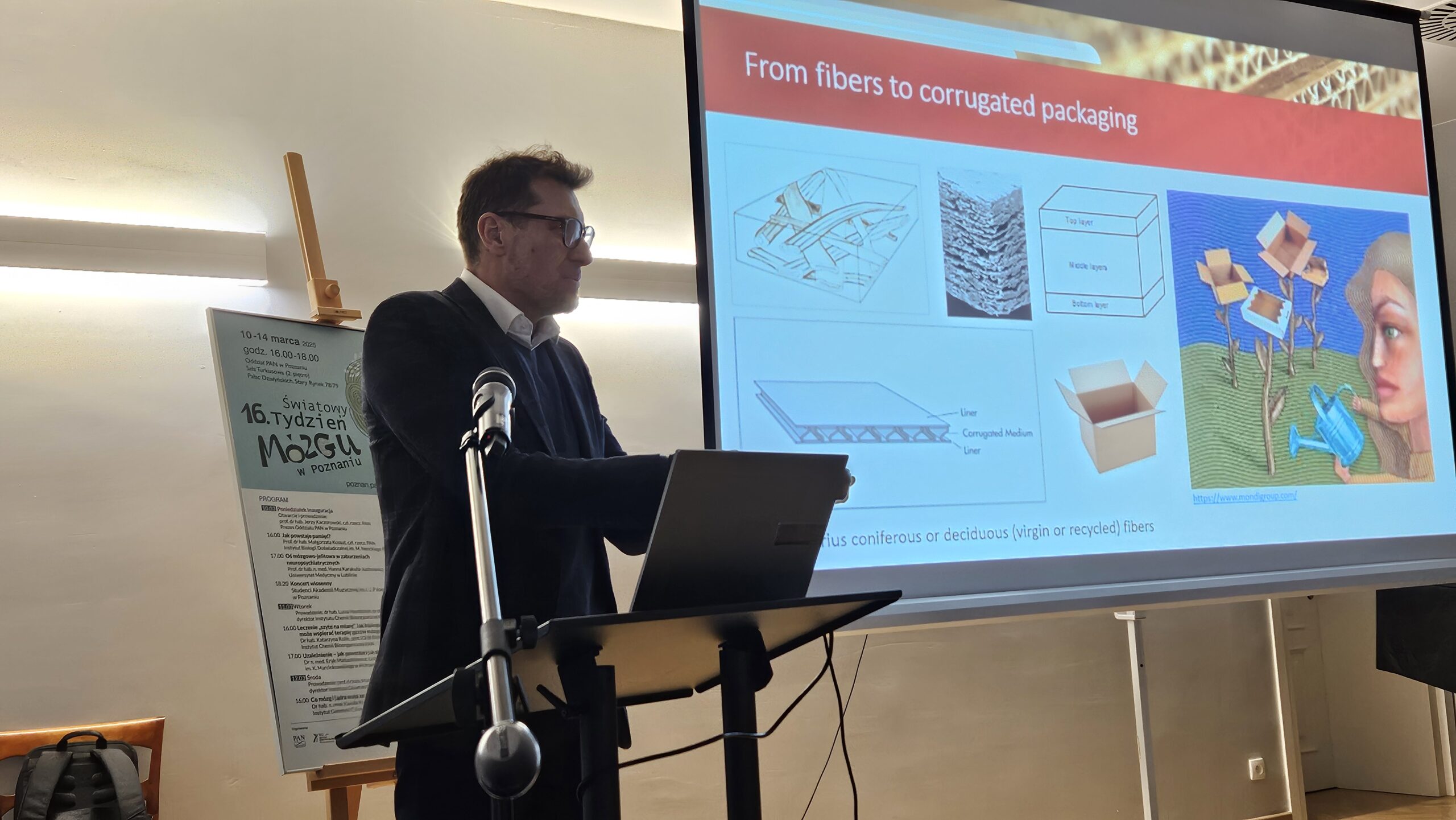 The professor devoted his presentation to paper and corrugated cardboard packaging, which, as a biodegradable material, does not leave piles of unused material in the natural environment or islands of plastic floating in the seas and oceans.